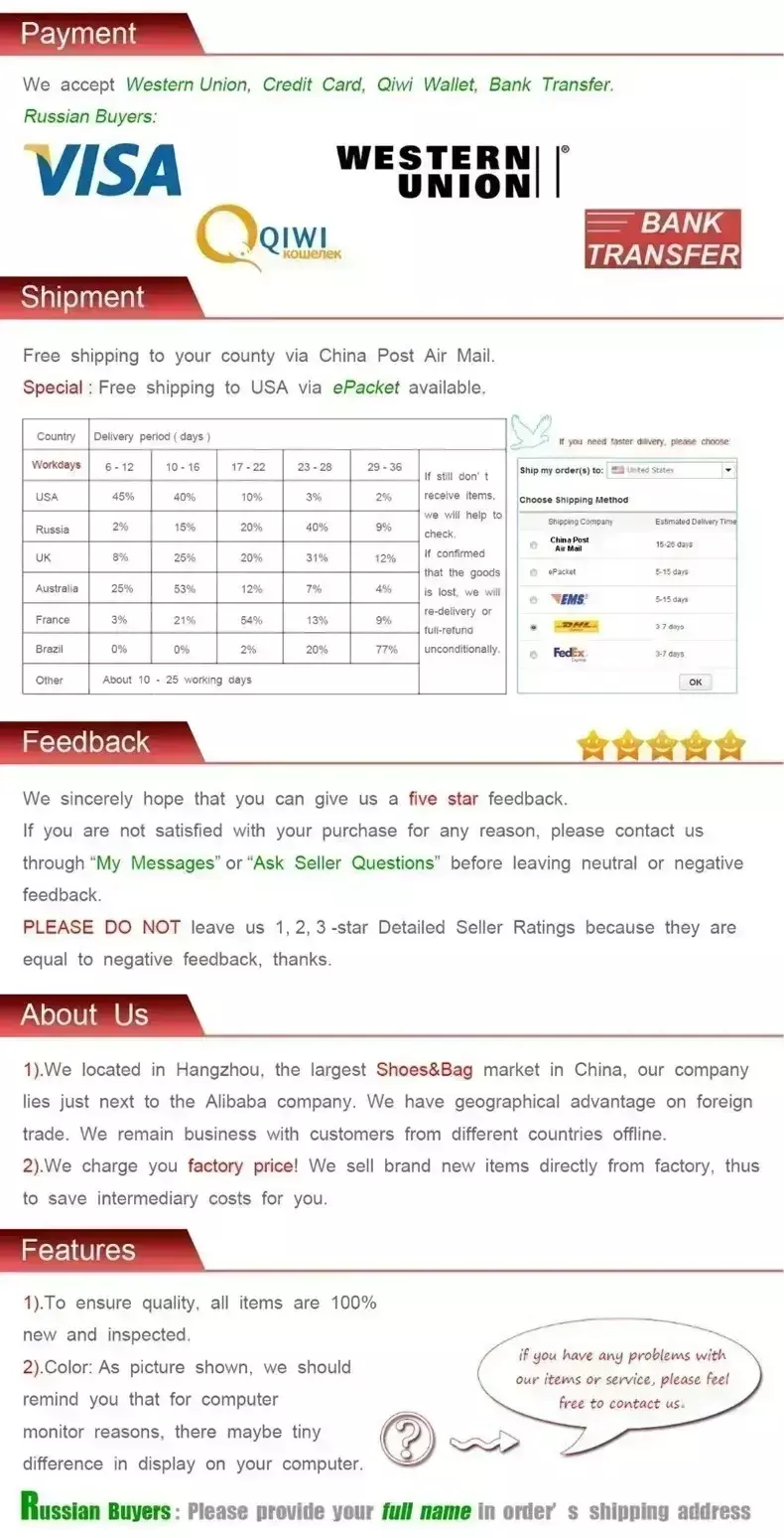 Oferecemos sempre sapatos da melhor qualidade e entrega rápida. Muito obrigado por nosso querido cliente nos dar um bom feedback um por um :)